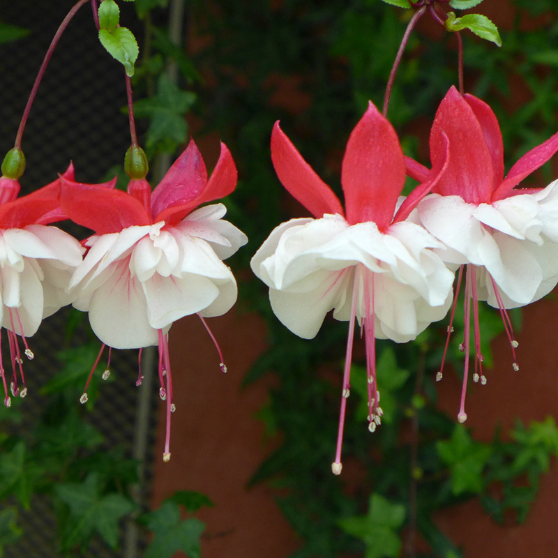 Die Blüten der Fuchsie sind glockenförmig und wachsen meist hängend, daher der Name „verkehrt herum“.