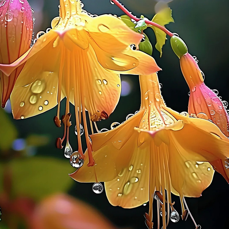 Die Blumensprache von Fuchsia umfasst Eleganz, Romantik, Sanftheit, Zärtlichkeit und Segen.