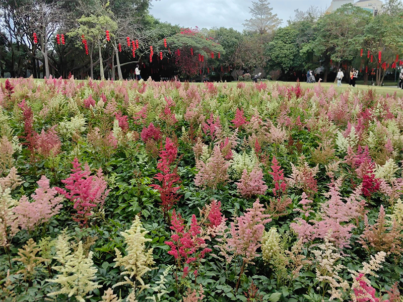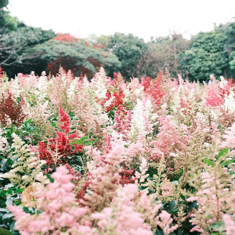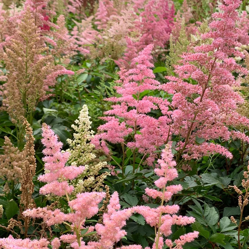 Astilbe ist eine mehrjährige Pflanze, die für ihre attraktiven gefiederten Blütenstände bekannt ist. Die gefiederten Blätter wachsen aufrecht bis zu einer Höhe von etwa 30 bis 90 cm. Die zarten, gefiederten Blütenstände von Astilbe sind attraktiv und ziehen viele Gärtner an. Sie sind in Rosa, Rot, Weiß, Lila und anderen Farben erhältlich und verleihen dem Garten eine romantische und elegante Atmosphäre.