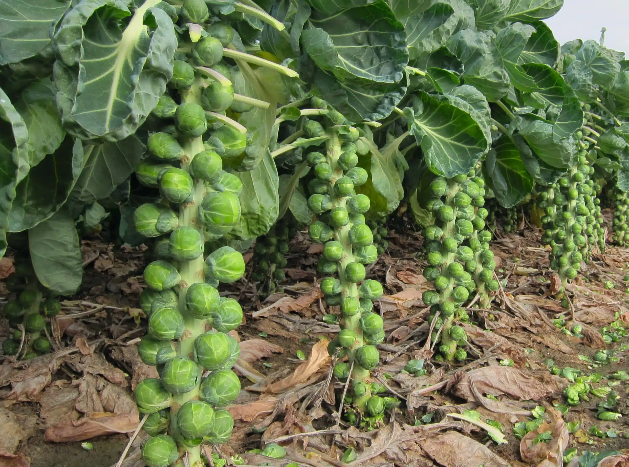 Rosenkohl wächst an einem hohen, aufrechten Blattstiel, der eine Höhe von 60 bis 90 cm erreichen kann. Er entwickelt sich aus den Blattachseln (den oberen Winkeln zwischen Stängel und Blättern) der Pflanze .
