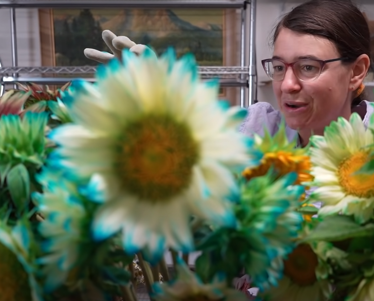 The sunflower (Helianthus annuus) is an annual plant with a sizeable daisy-like flower face. Its scientific name comes from the Greek words helios (“sun”) and anthos (“flower”). The flowers come in many colors (yellow, blue,purple,black,white,green,pink,red, orange, maroon, brown), but they are commonly bright yellow with brown centers that ripen into heavy heads filled with seeds. Sunflowers make excellent cut flowers, and many attract bees, birds, and butterflies.