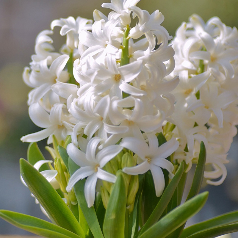 Hyazinthe (Hyacinthus) ist eine beliebte Frühlingsblume, die für ihre duftenden Blüten und leuchtenden Farben geschätzt wird. Hyazinthen zeichnen sich durch auffällige, dichte Blütenstände in verschiedenen Farben wie Blau, Rosa und Lila aus. Jeder Blütenstand besteht aus vielen einzelnen Blüten, die einen reichen, süßen Duft verströmen, der Bienen und andere Bestäuber anlockt.