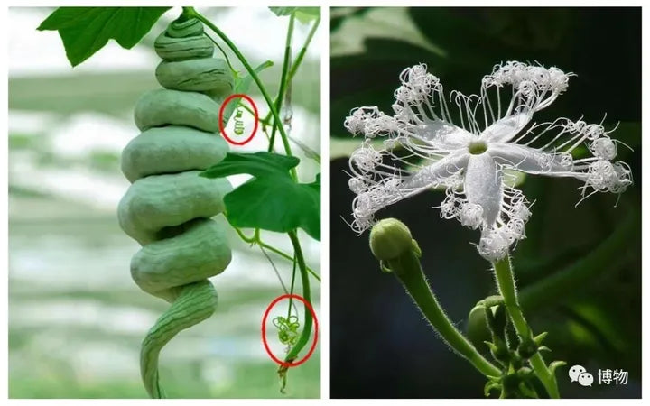 Pflanzmethode: Säe die Samen direkt im Garten oder starte sie drinnen und verpflanze die Sämlinge, sobald sie robust genug sind. Biete Unterstützung für die Ranken, da Schlangenkürbis-Pflanzen kräftige Kletterer sind. 🌱