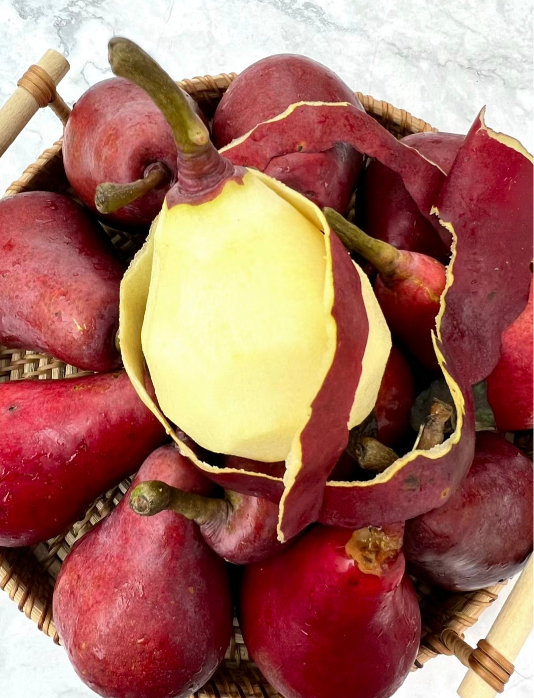 Die rote Birne ist eine einzigartige und köstliche Birnensorte, die von Verbrauchern wegen ihres leuchtend roten Aussehens und ihres süßen Fruchtfleischs geliebt wird. Es ist vielseitig einsetzbar und kann pur gegessen oder für eine Vielzahl von Gerichten und Zubereitungen verwendet werden.