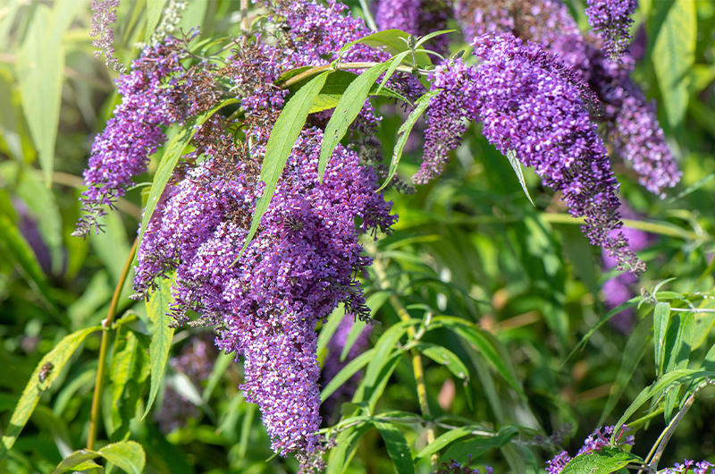 Sommerflieder ist ein sommergrüner Strauch, der eine Höhe von 3 Metern erreichen kann. Es zeichnet sich durch schlanke Blütenstände in verschiedenen Farben wie Lila, Rosa und Weiß aus. Die Blüten verströmen einen angenehmen Duft, der Bienen, Schmetterlinge und andere Bestäuber anlockt. Die Blüte erfolgt normalerweise im Frühsommer und kann bis zum Herbst dauern.