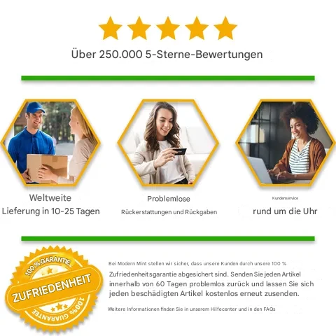 - Sollten Sie aus irgendeinem Grund nicht vollständig zufrieden sein, können Sie das Produkt innerhalb von 90 Tagen zurückgeben.